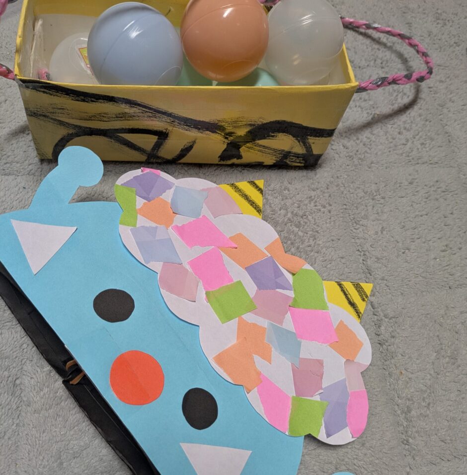 保育園バッグの中に、しーちゃんが作ったと思われる鬼のお面と豆まき用の箱が入っていて園ではそれらしい行事があったんだなと思いました。